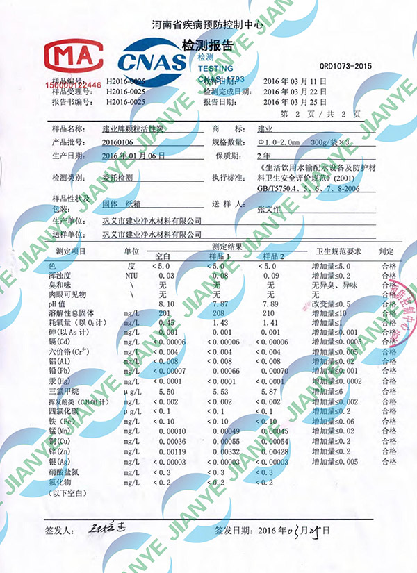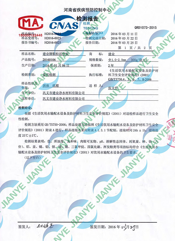 活性炭河南省防疫站檢測(cè)報(bào)告