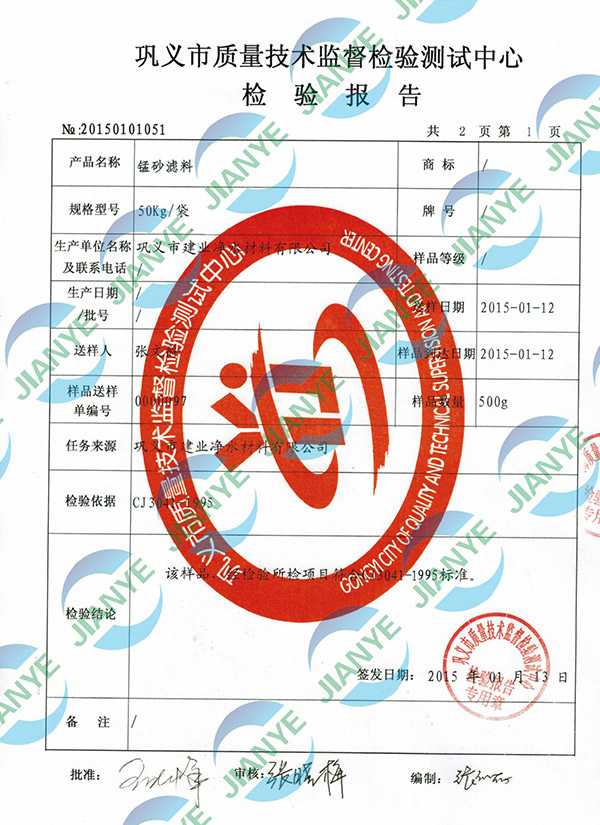 2020錳砂第三方檢測(cè)報(bào)告【建業(yè)凈水】